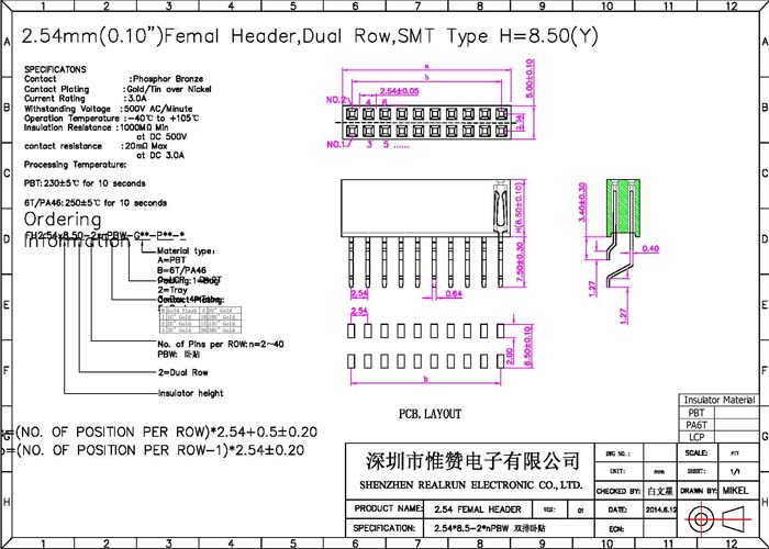 Model Number : FH2.54*8.5-2*nPBW 6PBW